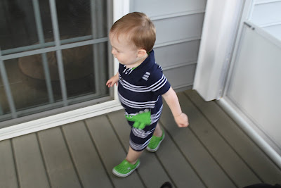 Today Kellen went for his 15 month well visit. He is 25 lbs and just shy of 32" tall. That puts him in the 50th percentile for his weight and the 75th percentile for height. This has been pretty consistent over the past several months. He is also getting all four of his canine teeth in, which explains the excessive finger chewing and drooling. Once they are all in, he will have 16 teeth (that seems like a lot for such a little boy. He is meeting all his milestones; throwing, running, talking, and much more! He is just doing new things everyday. He now uses his fork and spoon to eat fairly consistently. He also has about 6-8 words he uses regularly and about 10 signs. His personality is in full blossom!